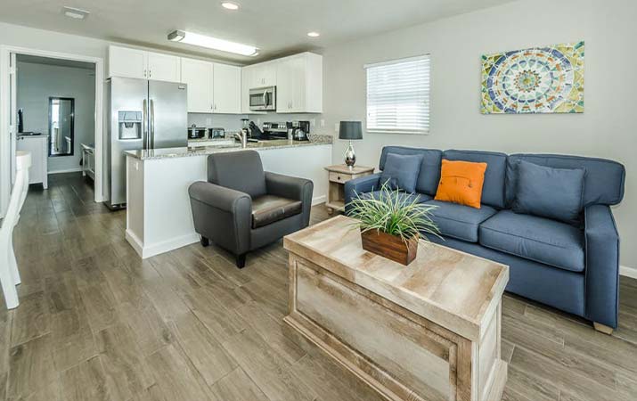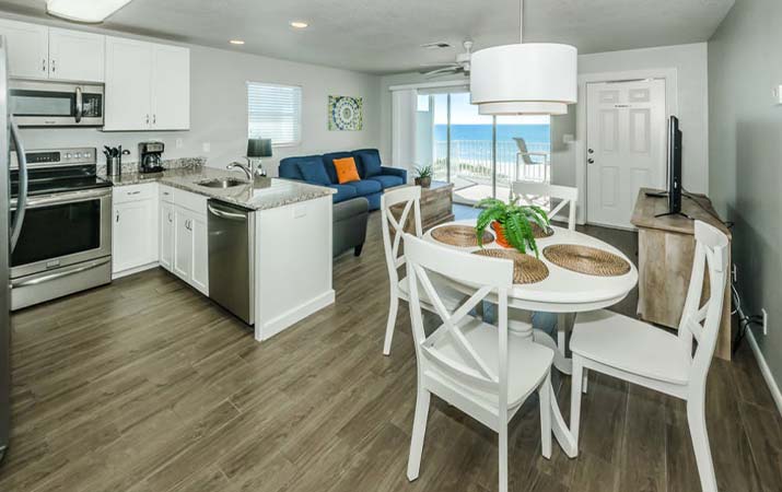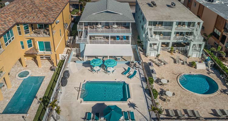 We are proud of our unique property with only ten condominiums, insuring an easy to navigate resort stay unlike some large impersonal resort properties. Our 1, 2, and 3 Bedroom vacation condos offer full kitchens, all face the beach, and each has it's own living space to enjoy television or family time together. They are available for rental any time of the year. We offer a perfect setting for wedding groups to stay and family reunion get togethers. You can rent half the condos with your own pool or the rent the entire property offering you two private pools and complete privacy and independence for your guests.